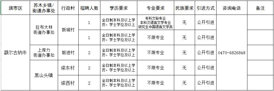 1、額爾古納市2020年度“一村一名大學(xué)生”崗位需求目錄
