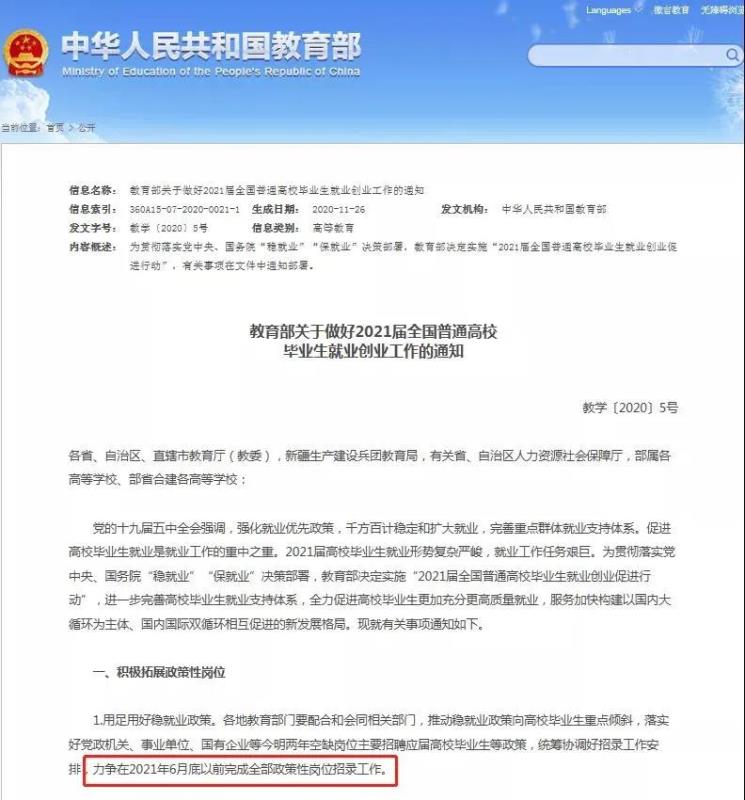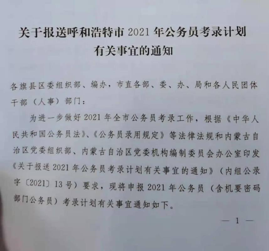 內(nèi)蒙古公務(wù)員有新消息,2021內(nèi)蒙古公務(wù)員考試招錄工作已啟動,最近一直有其他省份發(fā)布關(guān)于省考提前的信息,終于內(nèi)蒙古也有了公務(wù)員消息。根據(jù)圖片來看,內(nèi)蒙古已經(jīng)開啟了2021年公務(wù)員招錄工作。這也再一步證實了,各省都在積極響應(yīng):2020年11月份教育部發(fā)布的《教育部關(guān)于做好2021屆全國普通高校畢業(yè)生就業(yè)創(chuàng)業(yè)工作的通知》,通知中明確表明:力爭在2021年6月底以前完成全部政策性崗位招錄工作。