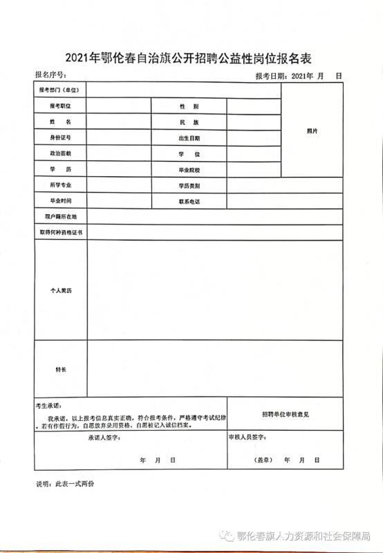 2、2021年鄂倫春自治旗公開招聘公益性崗位報名表