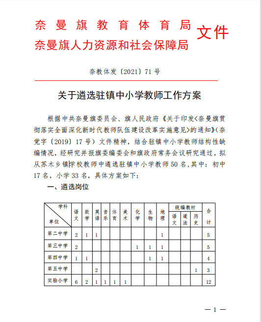 【奈曼遴選教師50人】關(guān)于奈曼旗遴選駐鎮(zhèn)中小學(xué)教師工作方案